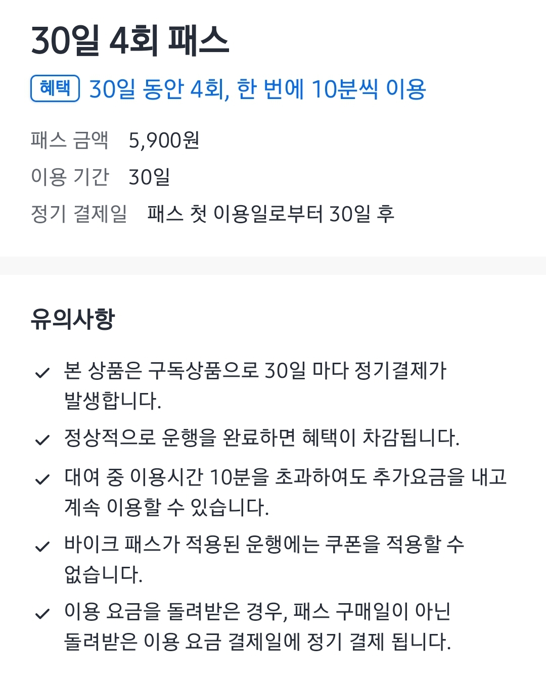 이렇게 울 동네에 주로 있는 자전거들을 쭉 써봤다. 물론 전국으로 확대해본다면 굉장히 많은 서비스가 있지만 일단 내가 봐왔던 서비스로 알아봤다. 패스까지 보니까 너무 복잡하다..